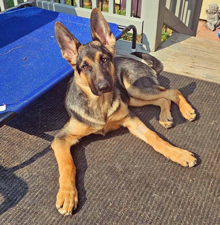 Mando is a huge German Shepherd, he is learning how to walk on those huge feet and so funny to watch him.  He is smart and will be a model dog to learn to teach other puppies.